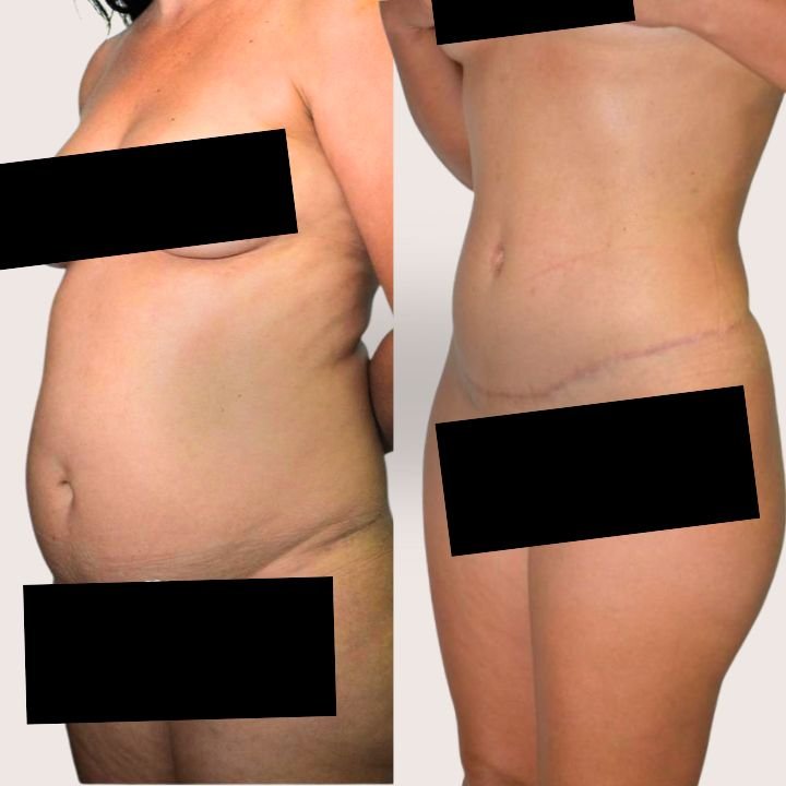 O abdômen fica visivelmente mais firme, liso e alinhado com o restante do corpo. A flacidez desaparece, o excesso de pele é removido e a cintura ganha mais definição.